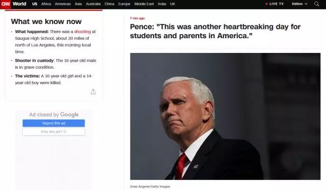 枪击案中的4名死者均为亚裔男性,年龄在25到35岁间,目前枪手仍然在逃。 据CNN报道,当地警方表示,另外5名被送往同一家医疗中心的伤者,都没有生命危险。还有一人被送往别家医院。 警方称,目前还没有迹象显示嫌犯认识被害人。 由于目前还不知道枪手以及其驾驶的可疑车辆的资讯,警方正在挨家挨户地询问,希望能找到相关的监视录像画面以及目击者,以取得嫌犯资讯。 突然发生的恐怖枪案让附近的居民人心惶惶。有邻居说,这不是他们的社区首次发生枪击案,他隔壁邻居的房子上周才被人开枪,"太阳下山后,我待在外面就觉得不安全"。 这已是弗雷斯诺当天发生的第2宗致命枪击事件。当天一早,一名20多岁的男子在家中弹身亡。 警方正在调查这两起枪击事件是否存在关联。 现在的美国可以说是每天都有致命枪击案。据Fox News报道,奥克拉荷马州一家沃尔玛(Walmart)超市今天发生枪击时间,造成3人死亡,死者为两男一女。 据报道,两名死者被发现陈尸在商店外的车内,第三人则倒在停车场。 警方指出,目前尚不确定伤者数量。报导称,这家沃尔玛门市位于丹坎市(Duncan),在该州首府奥克拉荷马市南方大约75英里。 11月14日清晨,加州洛杉矶圣克拉丽塔市(Santa Clarita)的索格斯高中(Saugus High School)突发枪击案。 根据当地警方的消息,枪击案造成3名学生死亡,另有多人受伤。 另一位学生莎伦·奥雷拉娜·科尔多瓦惊魂未定:“我看到有人躺在地上,浑身都是血”。 据CNN报道,两位执法部门的消息人士确认,16岁的校园枪手名叫纳撒尼尔·伯豪(Nathaniel Berhow)。他来自一个白人与亚裔混血的家庭,在校表现良好,还是学校运动队的运动员。 美国副总统彭斯当时向在加州校园枪击案中遇难学生的家人表示慰问,他说:“对美国的学生和家长来说,这又是一个令人心碎的日子。” 然而,一切都没有改变,仅仅时隔两天,枪声又接连响起…… |