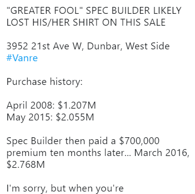 同样是在Dunbar地区,2015年5月,有人以205.5万加元的价格在买下来一套老房子。不到一年,就以276.8万加元的价格把房子卖给了一个开发商,也算是大赚了一笔。